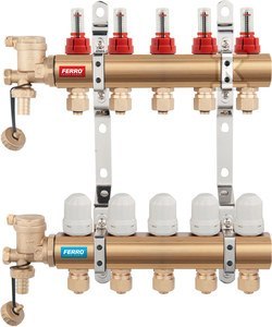 Rozdzielacz 3-drogowy z zaworami termostatycznymi i przepływomierzami, standard o numerze katalogowym N-RZP03S w kategorii Rozdzielacze pozostałe systemy, Pozostałe systemy. Produkt wyprodukowany przez markę FERRO, seria ROZDZIELACZE MOSIĘŻNE.