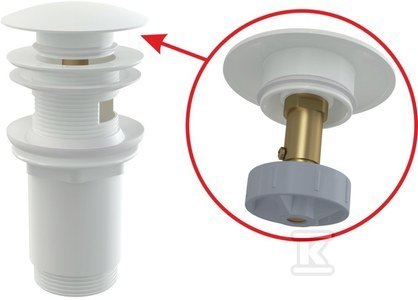 Spust umywalki Clik-Clak 5 / 4 metalowy z przelewem, duży korek, biały o numerze katalogowym A392B w kategorii Syfony umywalkowe i bidetowe, Syfony, redukcje, złącza, rury przyłączeniowe itp.. Produkt wyprodukowany przez markę ALCADRAIN, seria CLIK/CLAK.