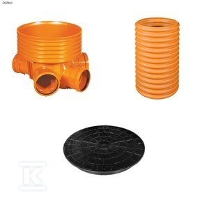 Studnia Diamir DN/ID 425 KORUGOWANA_ZESTAW: kineta zbiorcza TYP2 425xKG160 + trzon H=2m + teleskop H=40cm + pokrywa PP 425 kl.A15 o numerze katalogowym DLF861 w kategorii Studnie kanalizacyjne tworzywowe>Studnie tworzywowe kompletne. Produkt wyprodukowany przez markę KACZMAREK, seria DIAMIR DN/ID 425NW (KORUGOWANA).