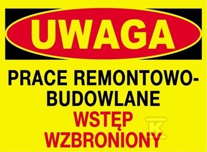 Budowlana tablica ostrzegawcza UWAGA PRACE REMONTOWO-BUDOWLANE WSTĘP WZBRONIONY o numerze katalogowym BTO-45 w kategorii Tablice informacyjne, Ochrona i BHP. Produkt wyprodukowany przez markę TRYTYT.