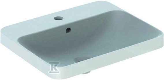 Umywalka Variform wpuszczana w blat, prostokątna, B55 cm, H17.8 cm, T45 cm, z przelewem, z otworem na baterię o numerze katalogowym 500.740.01.2 w kategorii Umywalki ceramiczne, Ceramika. Produkt wyprodukowany przez markę GEBERIT, seria VARIFORM.