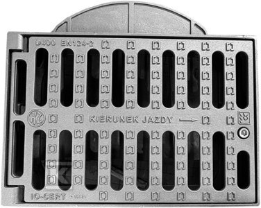 Wpust żeliwny sferoidalny "Sferus" D400 H115 3/4 kołnierza, z rusztem uchylnym z ryglem, nieażurowy, KL.D400 (40T) o numerze katalogowym  T0220-4001-2011-000 w kategorii Włazy i wpusty, Zwieńczenia studni. Produkt wyprodukowany przez markę KZO, seria SFEROIDALNY.