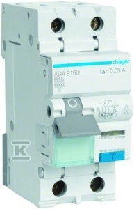 Wyłącznik różnicowoprądowy z członem nadprądowym B/6KA, 16A, 30mA, 2 biegunowy, typ A o numerze katalogowym ADA916D w kategorii Wyłączniki różnicowoprądowe z członem nadprądowym typ A, Wyłączniki różnicowoprądowe nadprądowe. Produkt wyprodukowany przez markę HAGER.