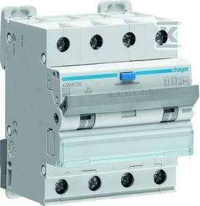 Wyłącznik różnicowoprądowy z członem nadprądowym 4P 6kA B 13A/30mA Typ A o numerze katalogowym ADM413C w kategorii Wyłączniki różnicowoprądowe z członem nadprądowym typ A, Wyłączniki różnicowoprądowe nadprądowe. Produkt wyprodukowany przez markę HAGER.