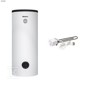 Wymiennik c.w.u. stojący z wężownicą o dużej powierzchni 2,05m2 do pomp ciepła SWP-201 w komplecie z grzałką elektryczną z termostatem GRW-2.0kW/230V, 6/4 o numerze katalogowym DLV999 w kategorii Wymienniki C.W.U.>Wymienniki pionowe. Produkt wyprodukowany przez markę KOSPEL, seria SWP.