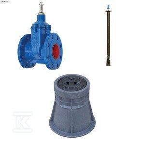 Zasuwa kołnierzowa F4 DN80, krótka bez kółka, PN16, GJS + obudowa teleskopowa + skrzynka PEHD_ZESTAW o numerze katalogowym  DNA685 w kategorii Zasuwy klinowe>Zasuwy kołnierzowe. Produkt wyprodukowany przez markę BOHAMET-ARMATURA, seria GJS-ŻELIWO SFEROIDALNE.