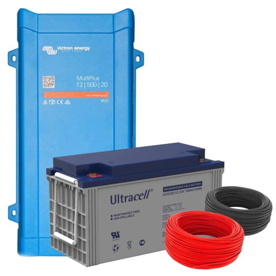 - W zestawie znajduje się także akumulator Ultracell GEL o pojemności 100Ah, który charakteryzuje się długowiecznością oraz odpornością na wstrząsy i wibracje, dzięki zastosowaniu technologii mat szklanych (AGM). Dodatkowo, akumulator ten oferuje do 500 cykli ładowania, co czyni go idealnym rozwiązaniem do zastosowań wymagających niezawodności i długotrwałej pracy.
